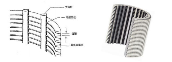 楔形网(Wedge Wire Screen) ,又称为约翰逊滤网(Johnson Screen) ,是应用特制不锈钢梯 形(楔形)丝(绕条)绕组在一圆周式排列的一组纵向支撑杆(筋条、托条)上焊制而成的滤芯,其筛管缝隙间会形成明显的 V 字形开口。