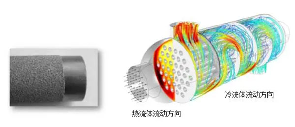 采用高通量管的换热器能够大大降低设计换热面积,减小设备体积,节约工程建设投资。高通量换热管特点是将粉末复合在换热管基体上,改变沸腾表面的表面状态,颗粒间构成孔隙,成为泡核沸腾中心,使膜状沸腾改变为泡核沸腾,显著提高沸腾给热系数。