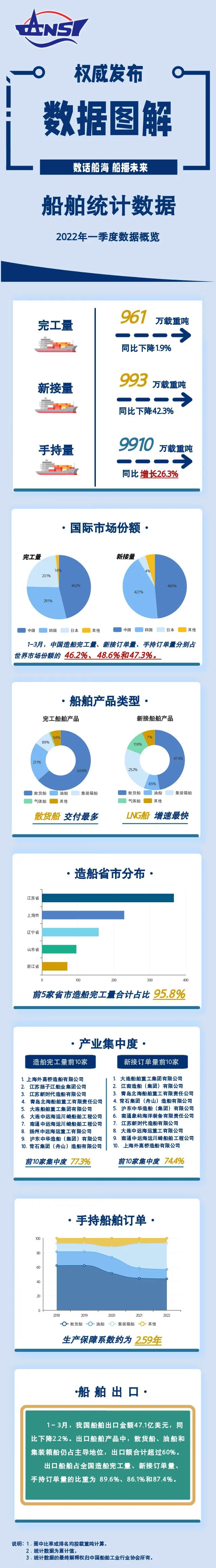 一图读懂丨2022年一季度船舶统计数据