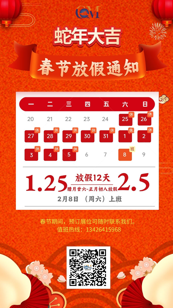 春节放假通知 | CM2025北京海工展恭祝蛇年大吉!