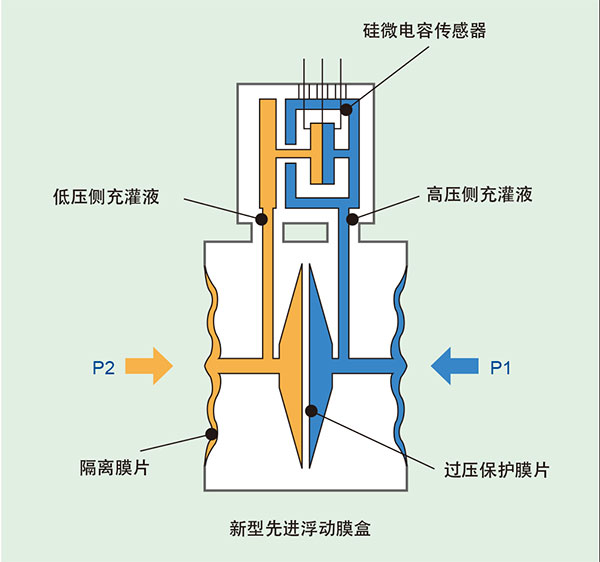 确保传感器工作稳定的新型先进浮动膜盒能在各种严酷的环境中保护传感器。更加小型化,易于现场的设置和操作。虽然缩小了体积, 而温度特性、静压特性、过压特性比传统产品更优异。