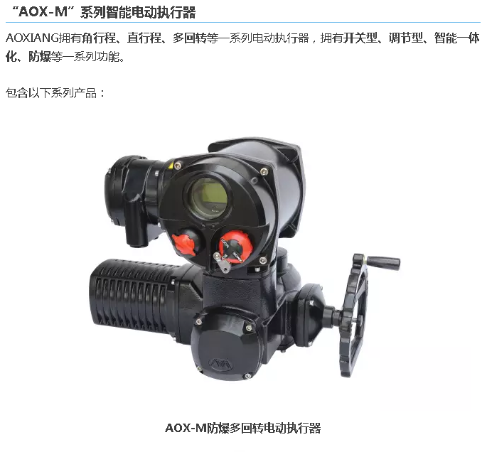 AOXIANG致力于研发,设计,制造电动球阀、执行器已有20年历史。公司秉持严谨,可靠的原则,凭借多年丰富的现场应用经验,为压力、流量和液位等流体控制应用领域提供最优质的电动阀门、电动执行器、角行程电动执行器、电动蝶阀、电动球阀及解决方案。 公司拥有一批富有激情,不断创新的高素质研发人员,从最初的设计,材料的选择,工艺的确定,精湛的制造手段,严谨的检测流程确保每一台AOXIANG电动球阀产品能满足最严苛的工况要求。
