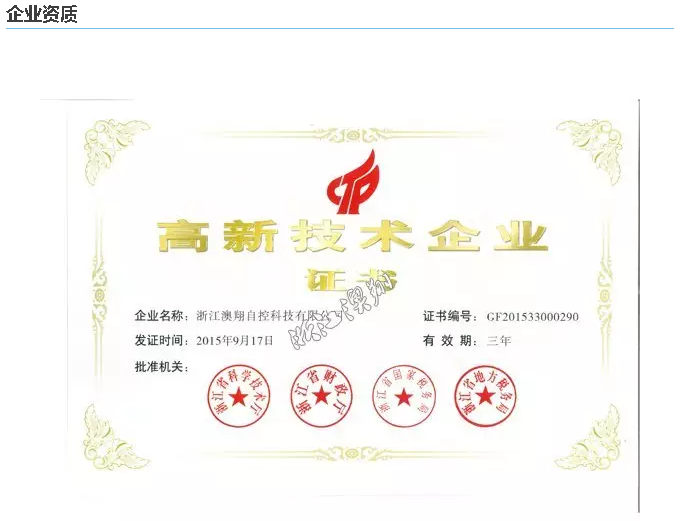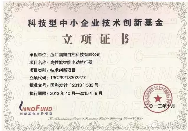 浙江澳翔自控科技有限公司于2016年11月28号正式成为中国石油天然气集团公司指定一级供应商(指定产品类型:角行程电动执行器、直行程电动执行器、多回转电动执行器)。