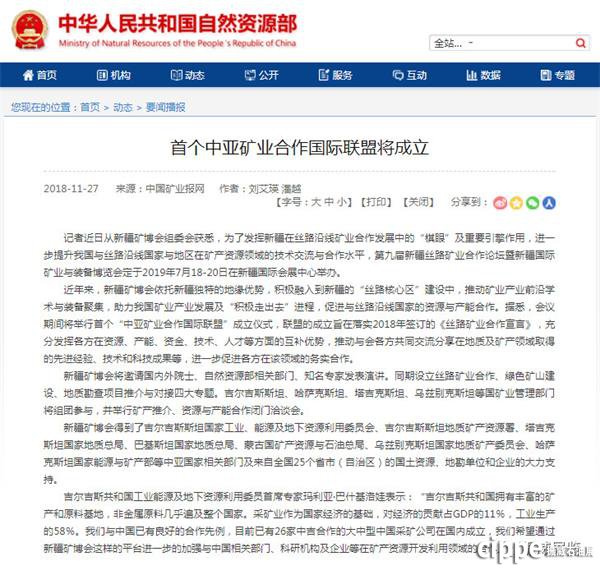 自然资源部:首个中亚矿业合作国际联盟将成立