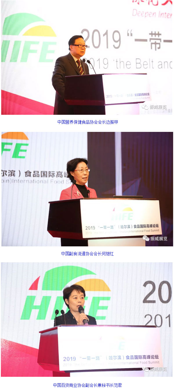 展会期间还举办了2019 “一带一路”(哈尔滨)食品国际高峰论坛,论坛由中国百货商业协会副会长兼秘书长范君主持,到场的嘉宾有哈尔滨市委常委、副市长张万平、中国营养保健食品协会会长边振甲、中国副食流通协会会长何继红、马来西亚、印度尼西亚重要嘉宾、艾伯塔省省政府北京办公室主任简孟炜、希腊大使馆经济贸易处一秘Mr. Dimitrios Pitsidimos、阿根廷南美洲国际集团代表、中国区主席内斯特•费尔南多•安德拉德斯,还有来自韩国、加拿大、泰国、保加利亚、印度尼西亚等国家的200名代表出席。