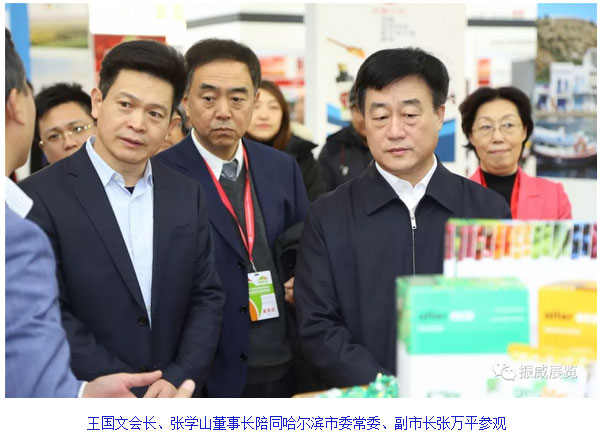 黑龙江省委常委、哈尔滨市委书记王兆力、市委副书记、市长孙喆、市委常委、副市长张万平在哈尔滨市贸促会会长王国文、振威展览股份董事长张学山的陪同下与有关嘉宾一同参观展览。