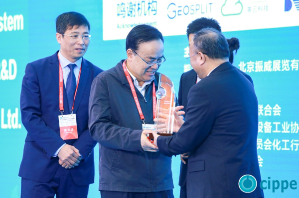 全国政协常委、中国石油大学(北京)校长张来斌为获奖企业颁发cippe“展品创新金奖”