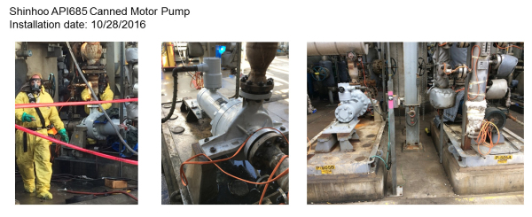 ▲美国某废油再精炼厂使用新沪API685屏蔽泵成功替换原API610离心泵