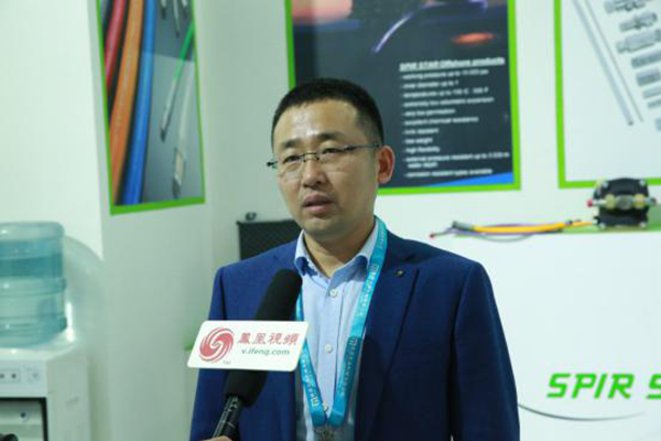 图:思辉流体科技(上海)有限公司总经理梁修全,于CM2019第九届北京海工展现场接受媒体采访,介绍“SPIRSTAR”品牌高压技术产品。