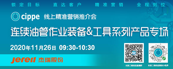 察势者智,顺势者赢。cippe顺应行业发展,不断创新会展服务模式,依托自身行业数据优势,细化上下游产业链条,实现供需双方线上、线下精准对接,截至目前已推出多场线上专题推介活动,为展商打造集展览展示、专家推介、交易洽谈于一体的精准营销线上展览平台。第三场直播活动——连续油管作业装备&工具系列产品专场将于11月26日(本周四)上午09:30-10:30正式开播。