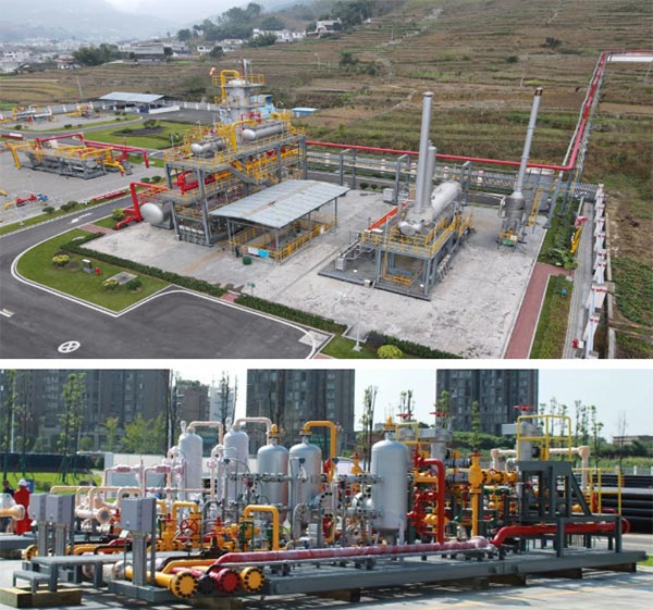 主要用于页岩气丛式井站页岩气的地面集输处理,包括原料气过滤除砂、节流降压、初分离、除砂器反冲洗、采出水外输,清管出站发送等,满足页岩气工况天然气集输处理。