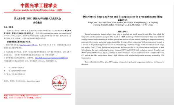 ▼2020年参加第九届国际光纤传感及应用大会,并在SPIE文集上发表相关技术论文。