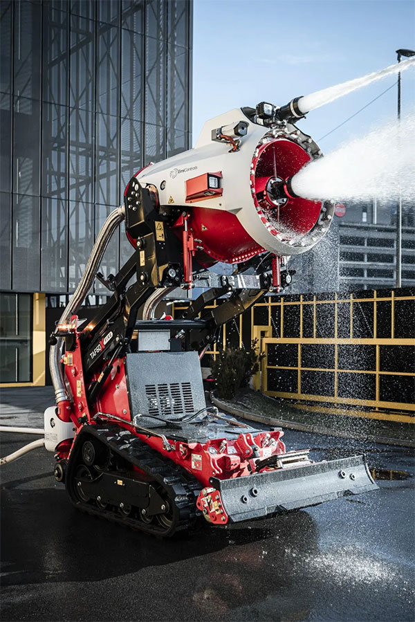 TAF60X多功能消防灭火机器人,喷射流量高达6000 LPM,可支持喷射泡沫,非常适用于化工厂或炼油厂等的液体火灾等大型火灾现场。