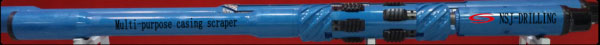 双佳多功能刮管器是一种新型的刮管器,既可作为一般的非旋转固定型刮管器使用,也可以作为一种可旋转型刮管器使用。除常规清管作业外,若中途遇阻,应停止下管柱,接洗井管汇,通过施加一定上提力,使剪销剪断转入旋转联动模式,然后可根据实际情况进行解卡作业,如提供一定扭矩、下压、循环、震击,直至恢复正常为止,再继续下管柱。