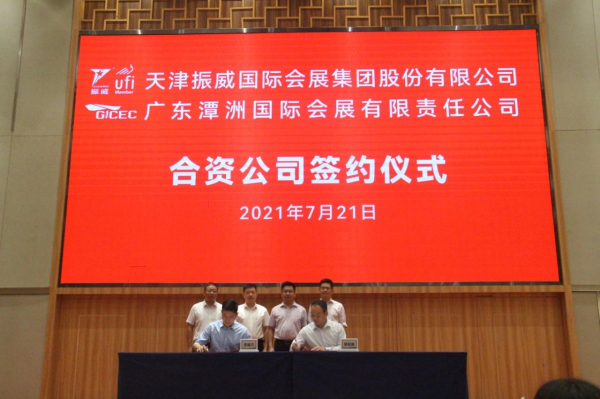 2021年7月21日,天津振威国际会展集团股份有限公司与广东潭洲国际会展有限责任公司成立合资公司——广东潭洲振威会展有限公司签约仪式,在佛山潭洲国际会展中心举行。佛山中德工业服务区(三龙湾)管委会会展局副局长黎浩锋,振威国际会展集团董事长张学山,振威国际会展集团总裁邓小辉,广东潭洲国际会展有限责任公司执行董事、总经理赵朋辉,振威国际会展集团常务副总裁张超凡等出席活动。